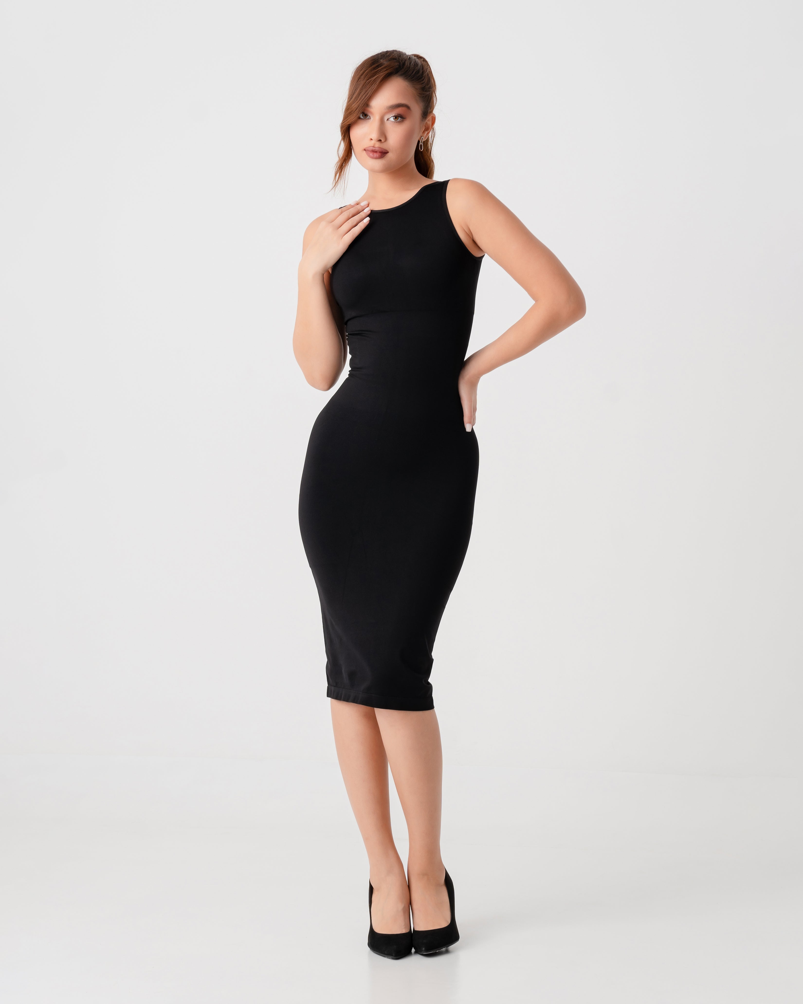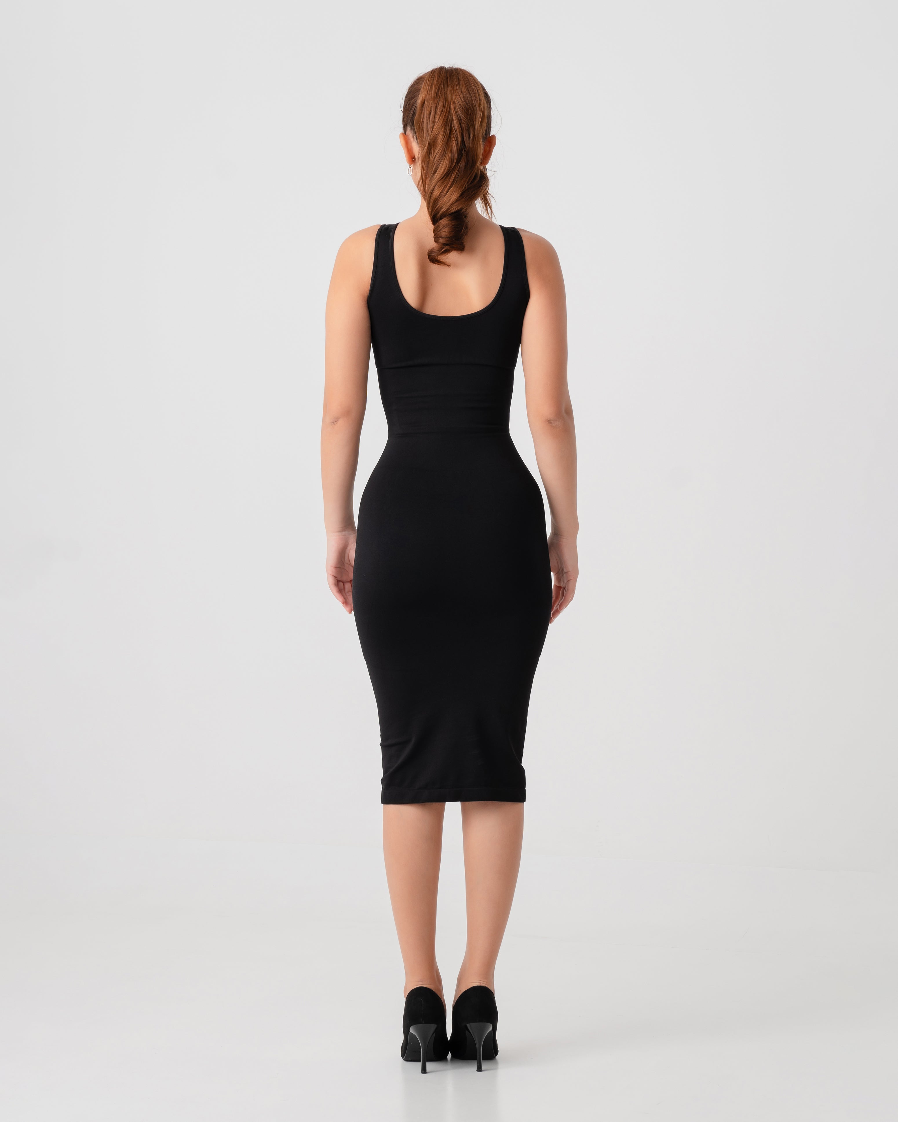 БЕСШОВНЫЙ КОМБИНЕЗОН С КВАДРАТНЫМ ВЫРЕЗОМ ЧЕРНЫЙ