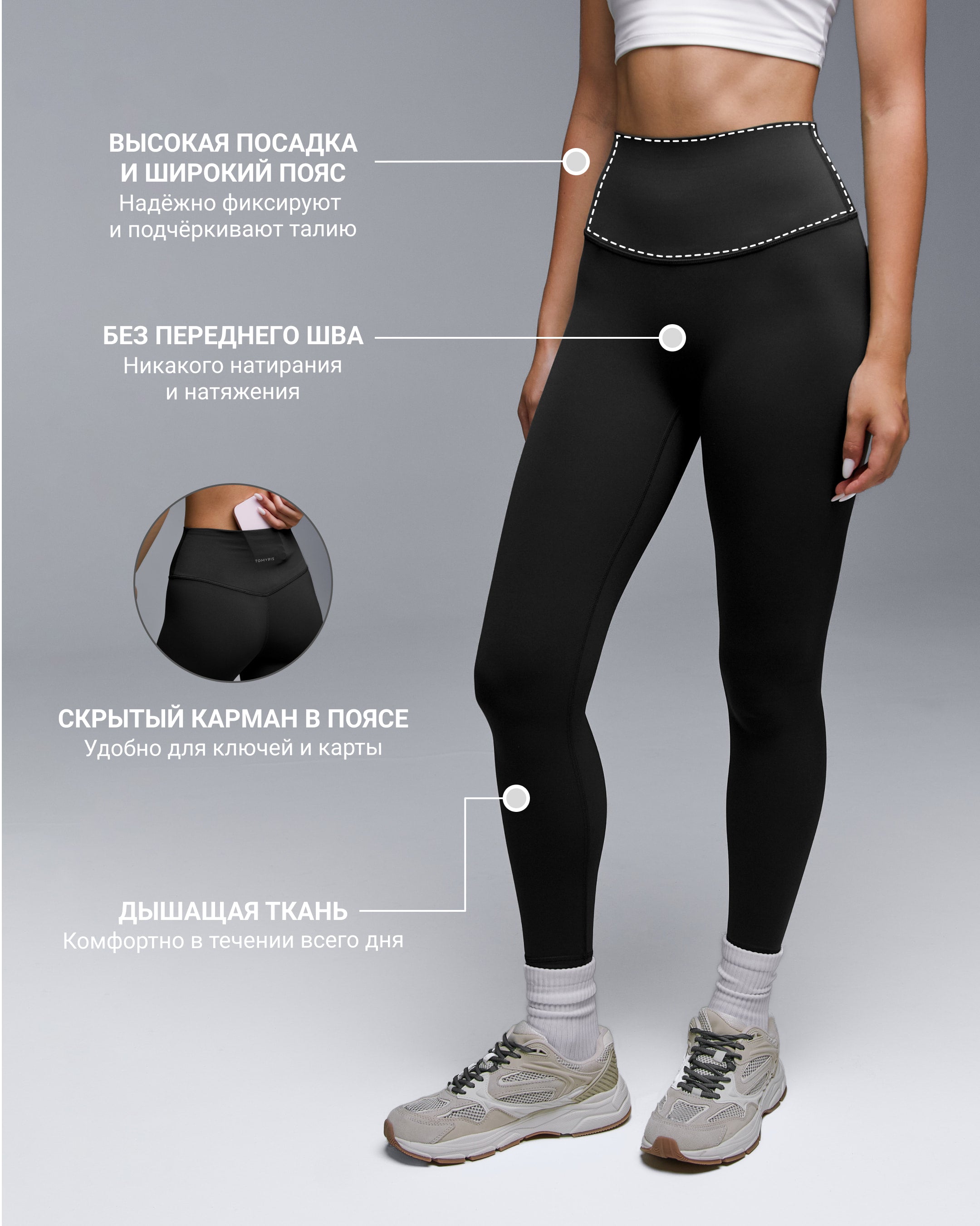 Фитнес-брюки TOMYRIS олицетворение легкости и свободы. Мягкая фактура ткани создаёт ощущение невесомости: настолько лёгкие, что вы едва ощущаете их на теле.