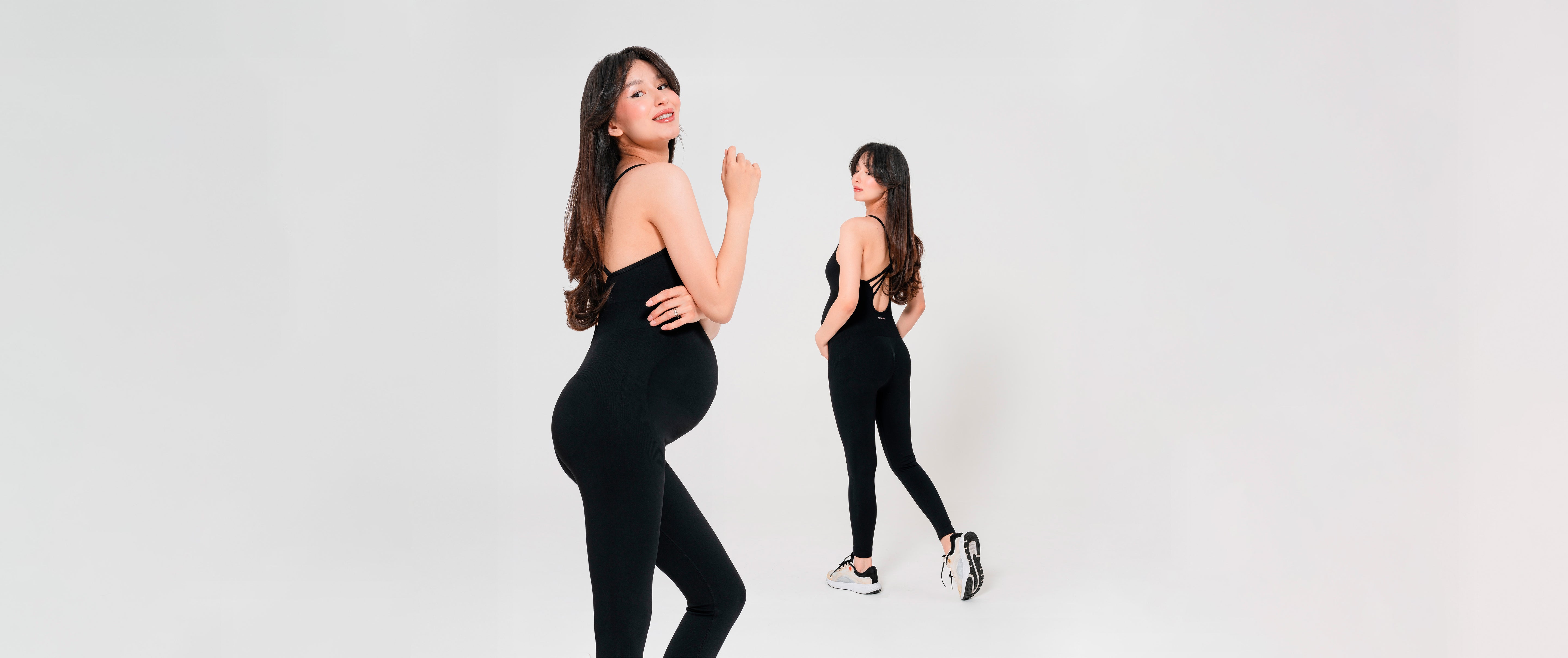 В нашем комбинезоне в зоне живота используется более тонкая и мягкая ткань, которая тянется в 4 стороны и не оказывает давления даже на большом сроке. Она как будто «дышит вместе с телом», позволяя животу расти свободно.