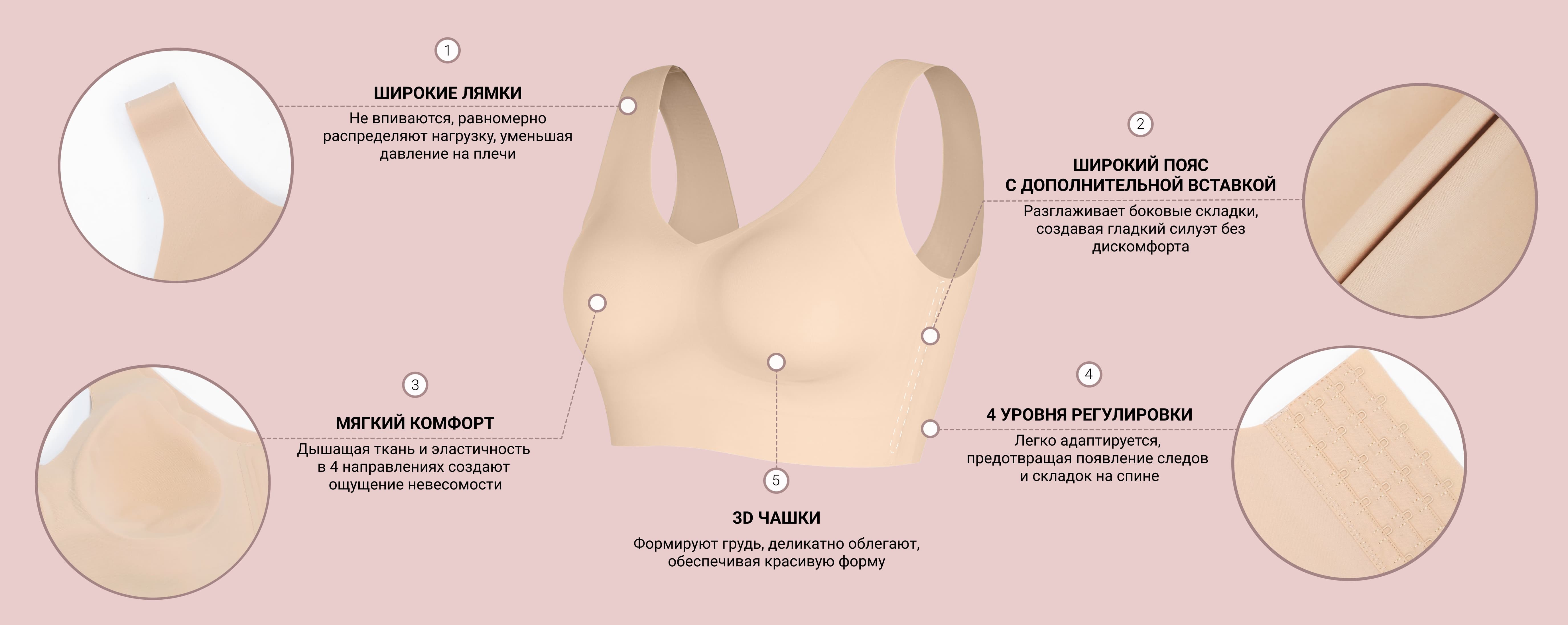 ✔ Киім астында білінбейді — табиғи әсер үшін тігіссіз және артық бөлшектерсіз.