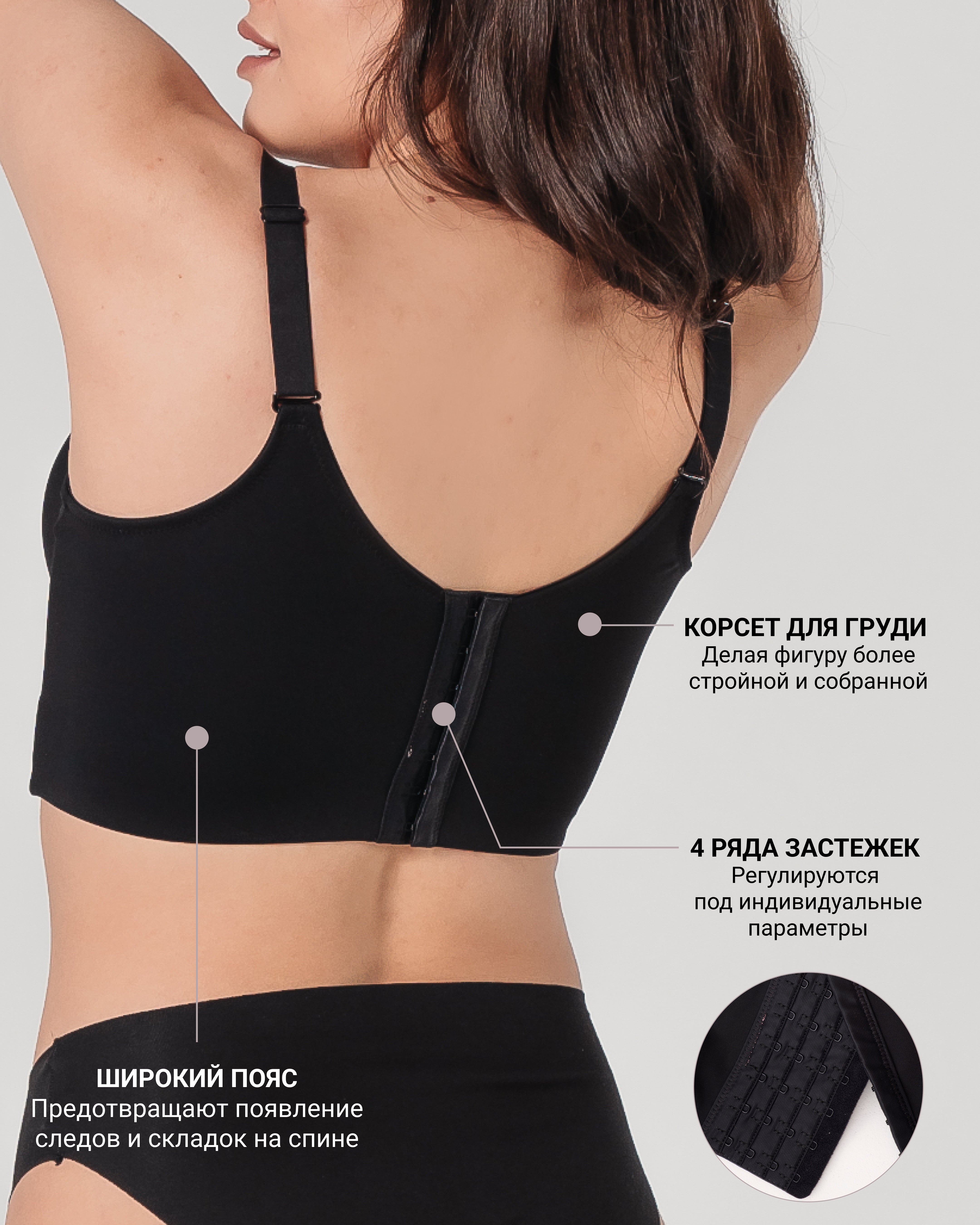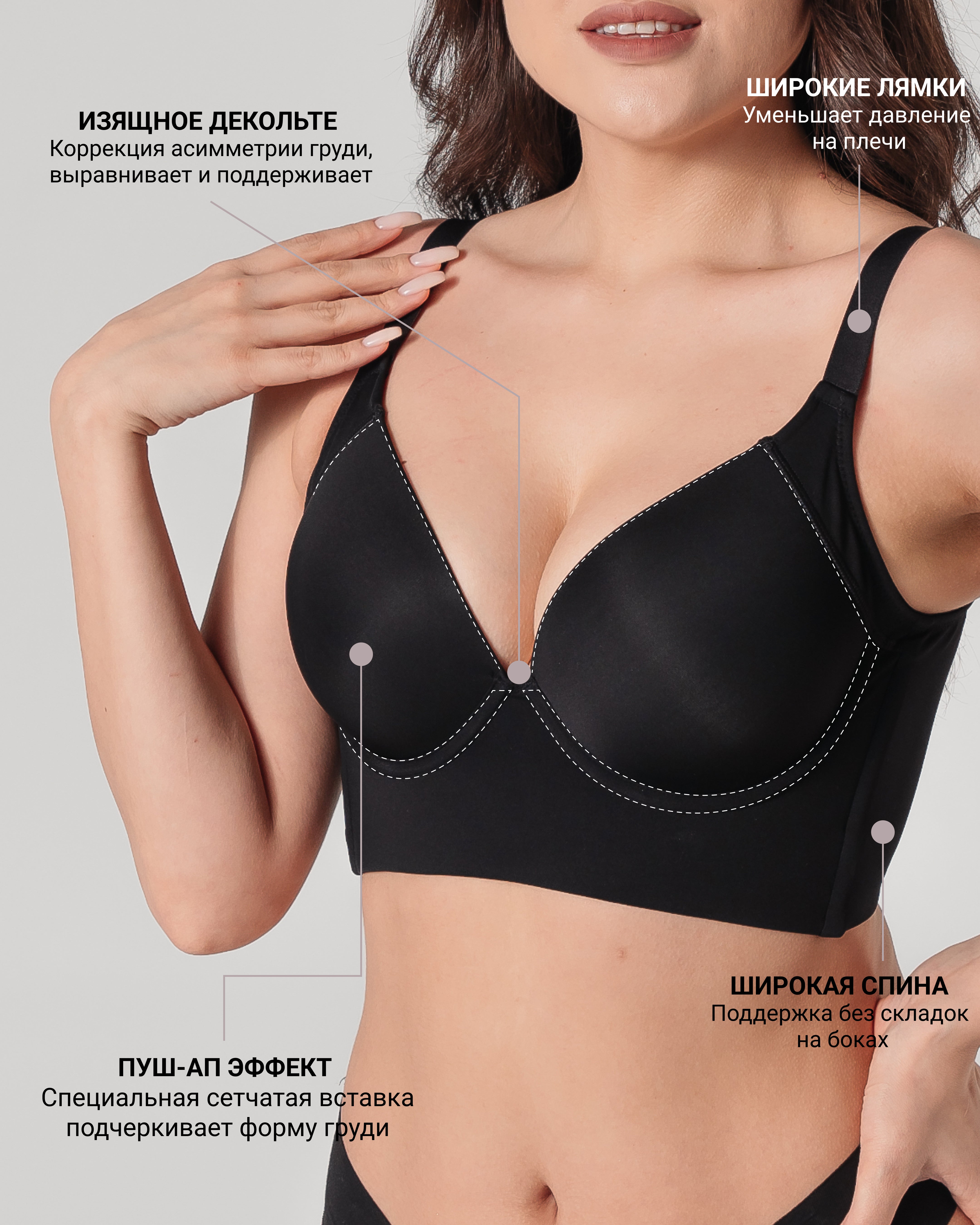 Тегіс дизайны арқасында біздің көкірекше тығыз немесе жұқа киімнің астында көрінбейді. Ол тамаша сызық жасайды және сіздің силуэтіңізді ерекшелейді.