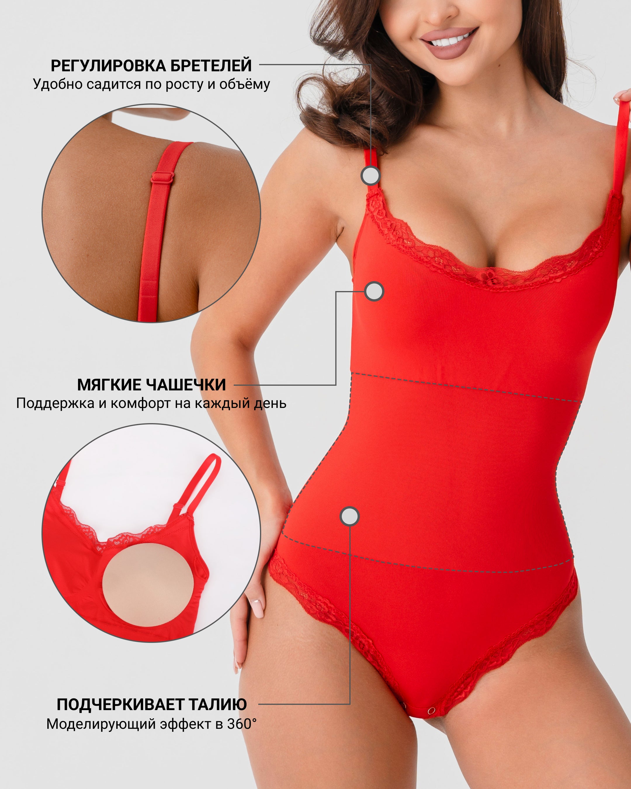 КРУЖЕВНОЕ МОДЕЛИРУЮЩЕЕ БОДИ-МАЙКА КРАСНАЯ
